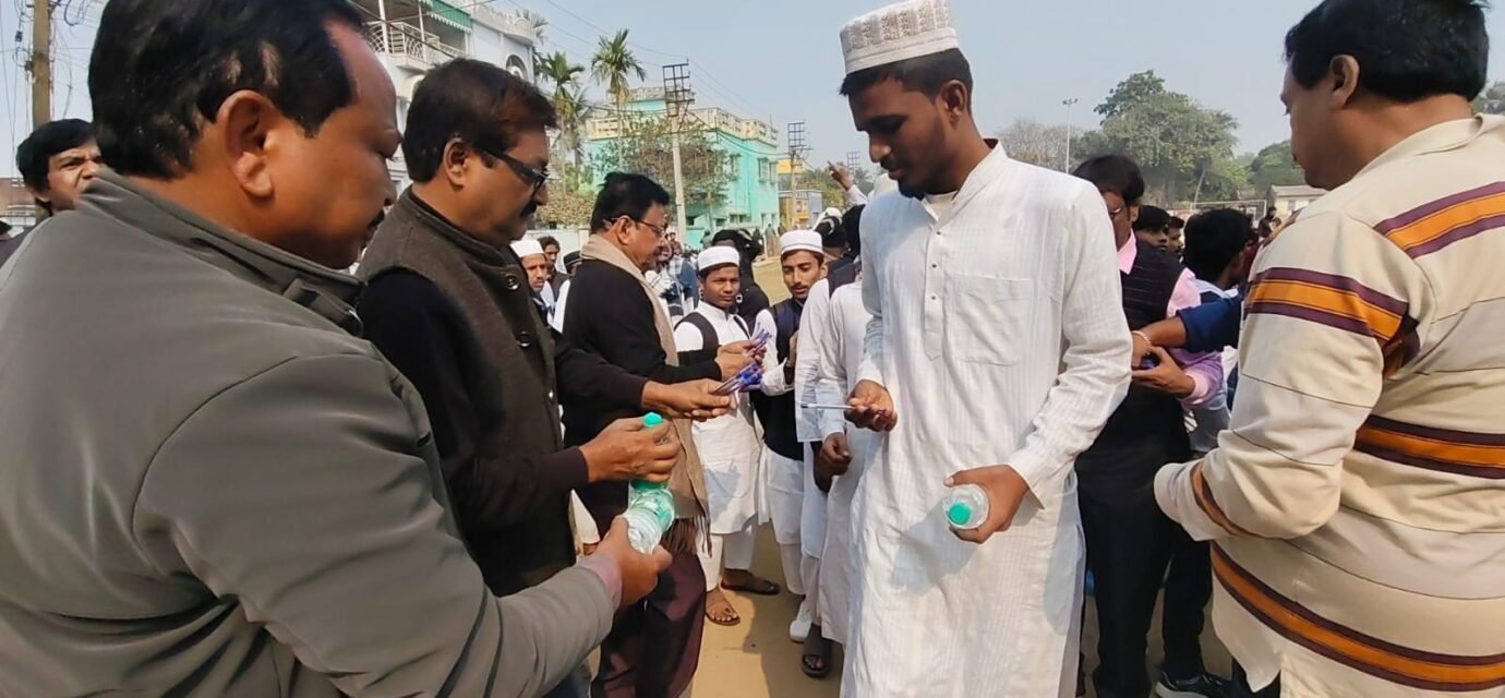 সেখ সামসুদ্দিন, ২৯ জানুয়ারিঃ হাই মাদ্রাসা বোর্ডের ২০২৬ মাধ্যমিক পরীক্ষা শুরু হল আজ। মেমারির খাঁড়ো হাই মাদ্রাসা স্কুলে পরীক্ষার্থীদের শুভেচ্ছা জানান মেমারি খাঁড়ো যুবক সংঘ। এই কর্মসূচিতে উপস্থিত ছিলেন মেমারি পৌরসভার চেয়ারম্যান স্বপন বিষয়ী, ২ নম্বর ওয়ার্ড কাউন্সিলর সেখ ইউসুফ, খাঁড়ো যুবক সংঘের উপদেষ্টা গৌতম চ্যাটার্জী ও সভাপতি সেখ সামসুদ্দিন সহ ক্লাব সদস্যবৃন্দ। মেমারির এই বিদ্যালয়ে ২৪০ জন ছাত্র-ছাত্রী পরীক্ষা দিতে আসেন। বিদ্যালয়ের শিক্ষকমন্ডলীর উপস্থিতিতে প্রত্যেক পরীক্ষার্থীর হাতে একটি করে কলম ও জলের বোতল দিয়ে জীবনের প্রথম বড় পরীক্ষায় বসার আগে শুভেচ্ছা জানানো হয়।